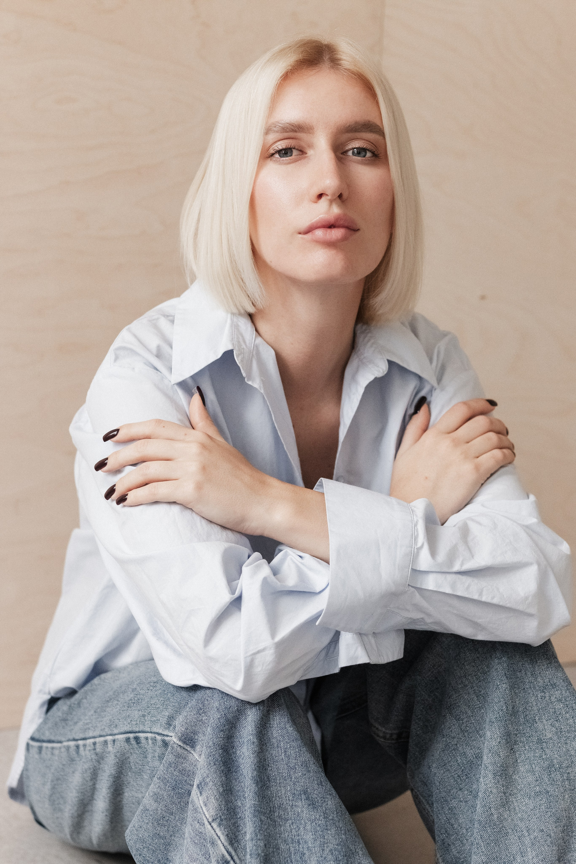 — придерживаюсь минимализма в выборе студий и образов, поэтому это всегда светлые и просторные студии без лишних атрибутов, простые базовые вещи нейтральных тонов, естественный макияж и легкая укладка.
